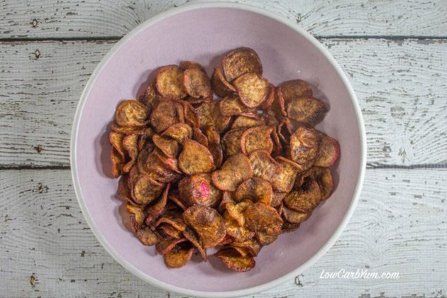 Here come more chip options! If you’re like me and just like to experiment, then you’ll probably want to try out these chips. The chip form of a parsnip is actually very low in carbs (1 cup serving is only 4g net carbs!). What makes them even better is the short amount of time it takes to prepare them. So have at it and enjoy a new keto snack!