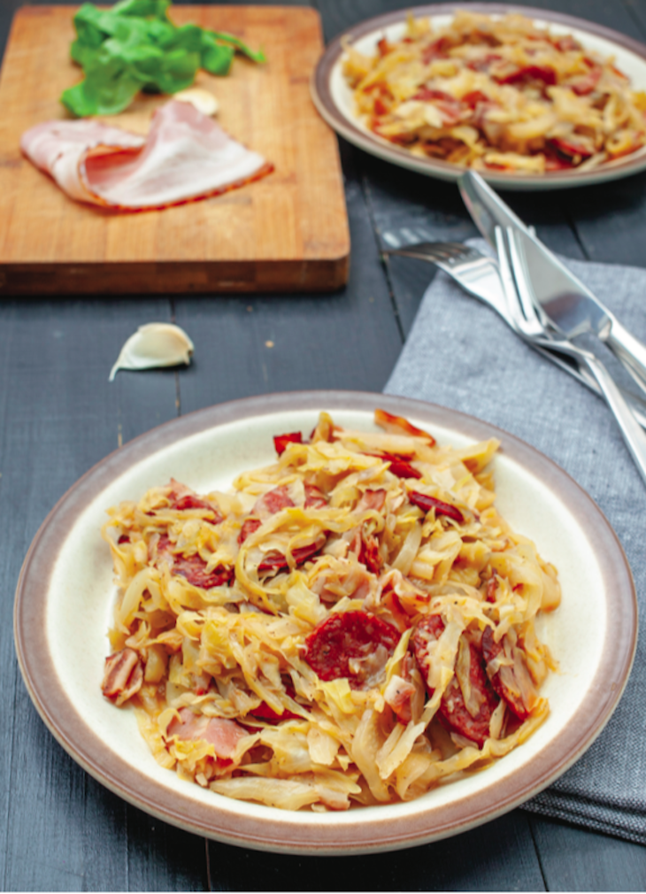 Tender cabbage cooked in beef broth with Mexican style chorizo, bacon, onions, and garlic. This recipe is so simple, but the flavors are out of this world. Want to make it now? Get the recipe.