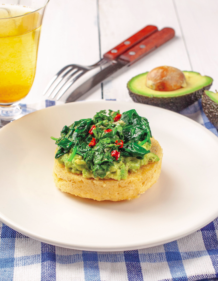 Make a bunch of my keto Mug Biscuits on page 134, slice them, and freeze them… then this recipe takes just 13 minutes to throw together! This recipe makes a great start to every day: loads of greens from avocado mash and spinach, plus a bright pop of flavor from chimichurri.
