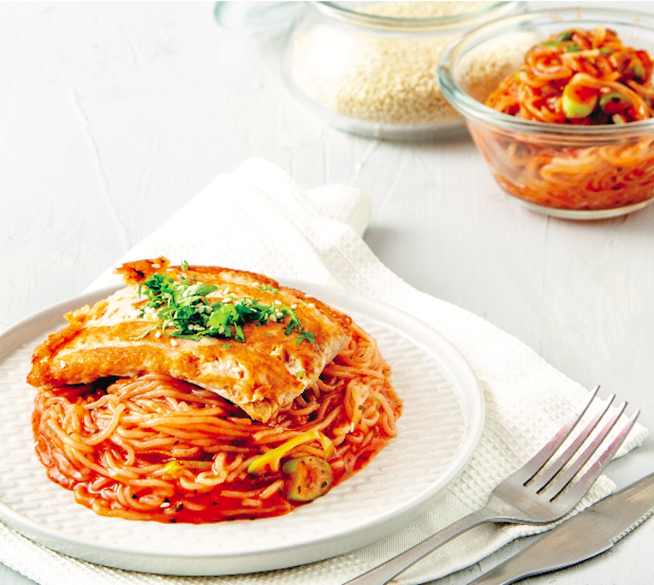 Perfectly cooked salmon, glazed with a sugar-free Asian-inspired sauce, served atop a bed of keto-friendly noodles. If you’ve never tried konjac noodles, this recipe will make a great first impression, or you can swap the noodles out for your favorite spiralized veggies.