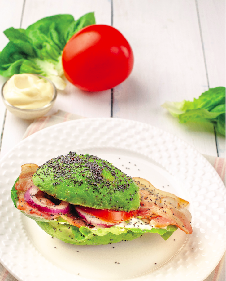 If you’re looking to mix up the typical lettuce wrap, this is going to blow your mind! Ditch the lettuce wrap for an avocado, and pile high with your favorite sammy selections. YUM!